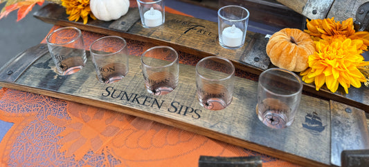 Sunken Sips Bourbon Barrel Tasting Board 5 Glasses