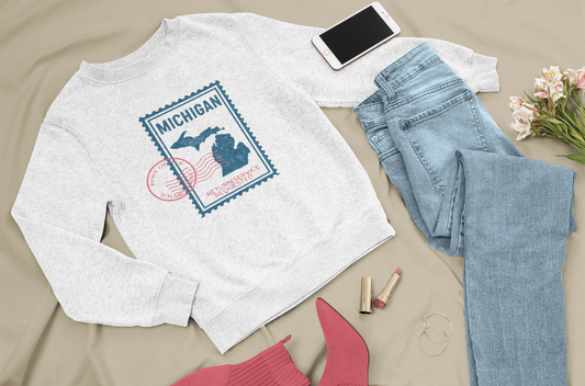 Michigan Stamp Return Service Requested Unisex Crewneck No Hood Sweatshirt